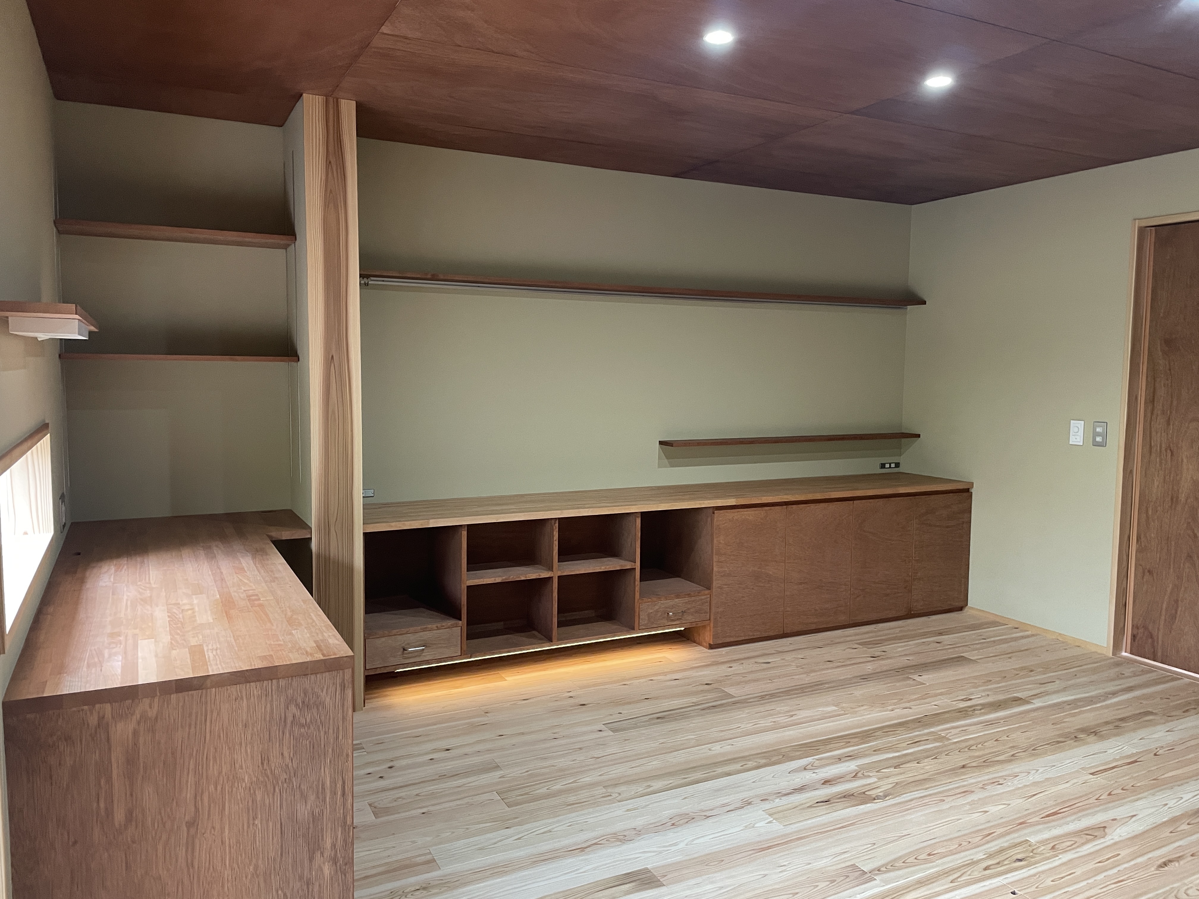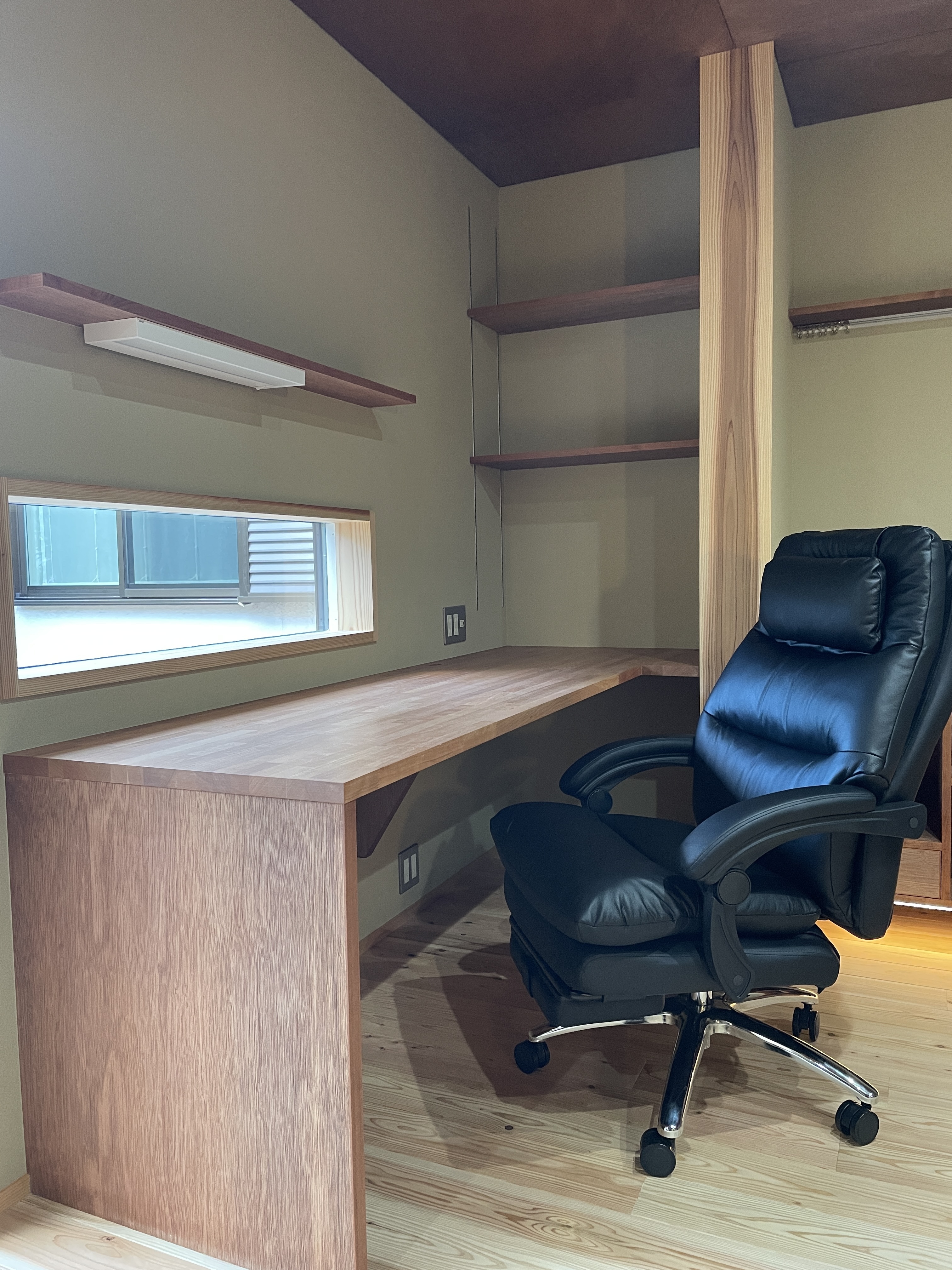 在宅でお仕事をされるご主人のワークスペース。 小窓を設け、お庭を眺めながら仕事ができるように。