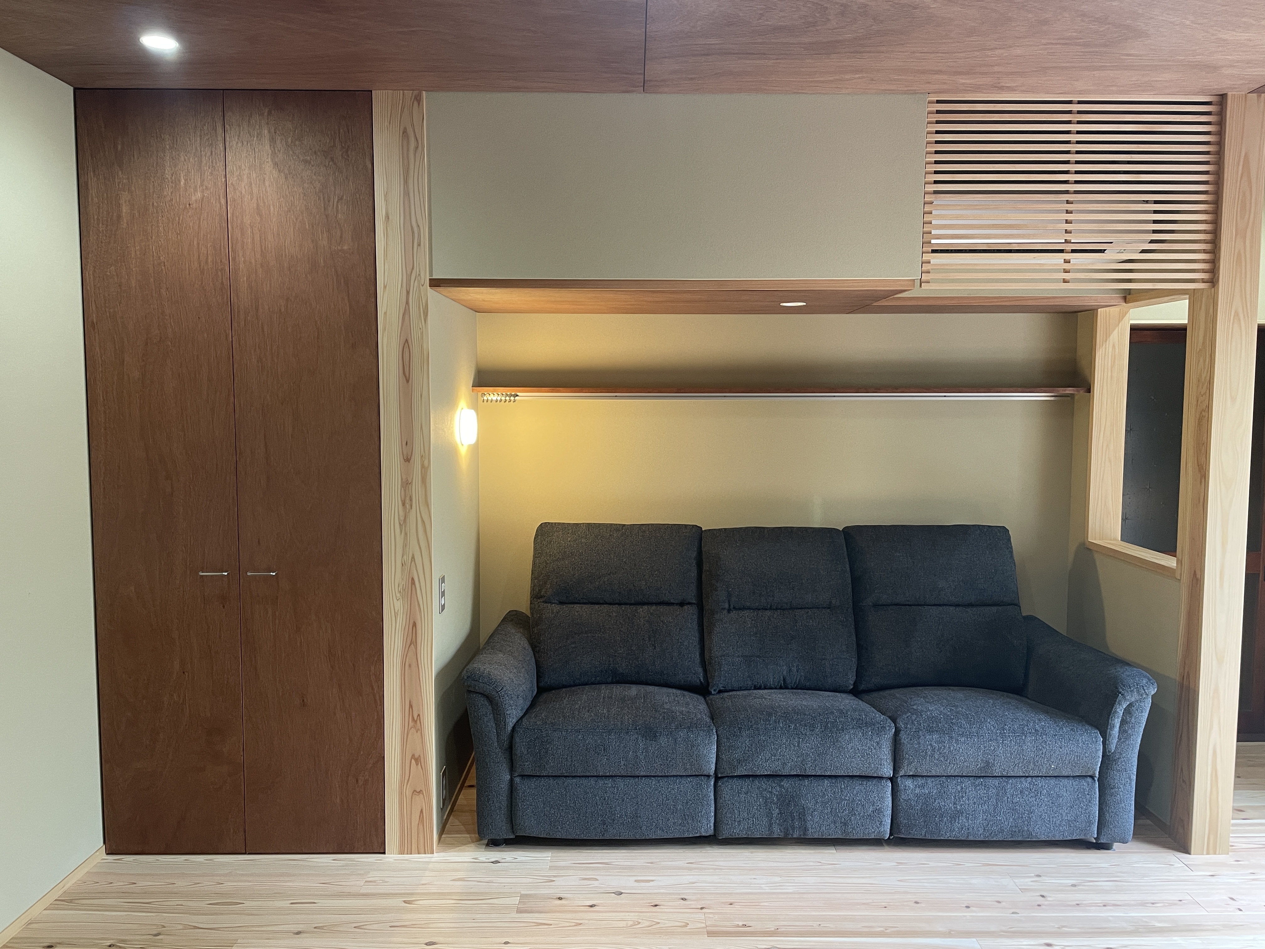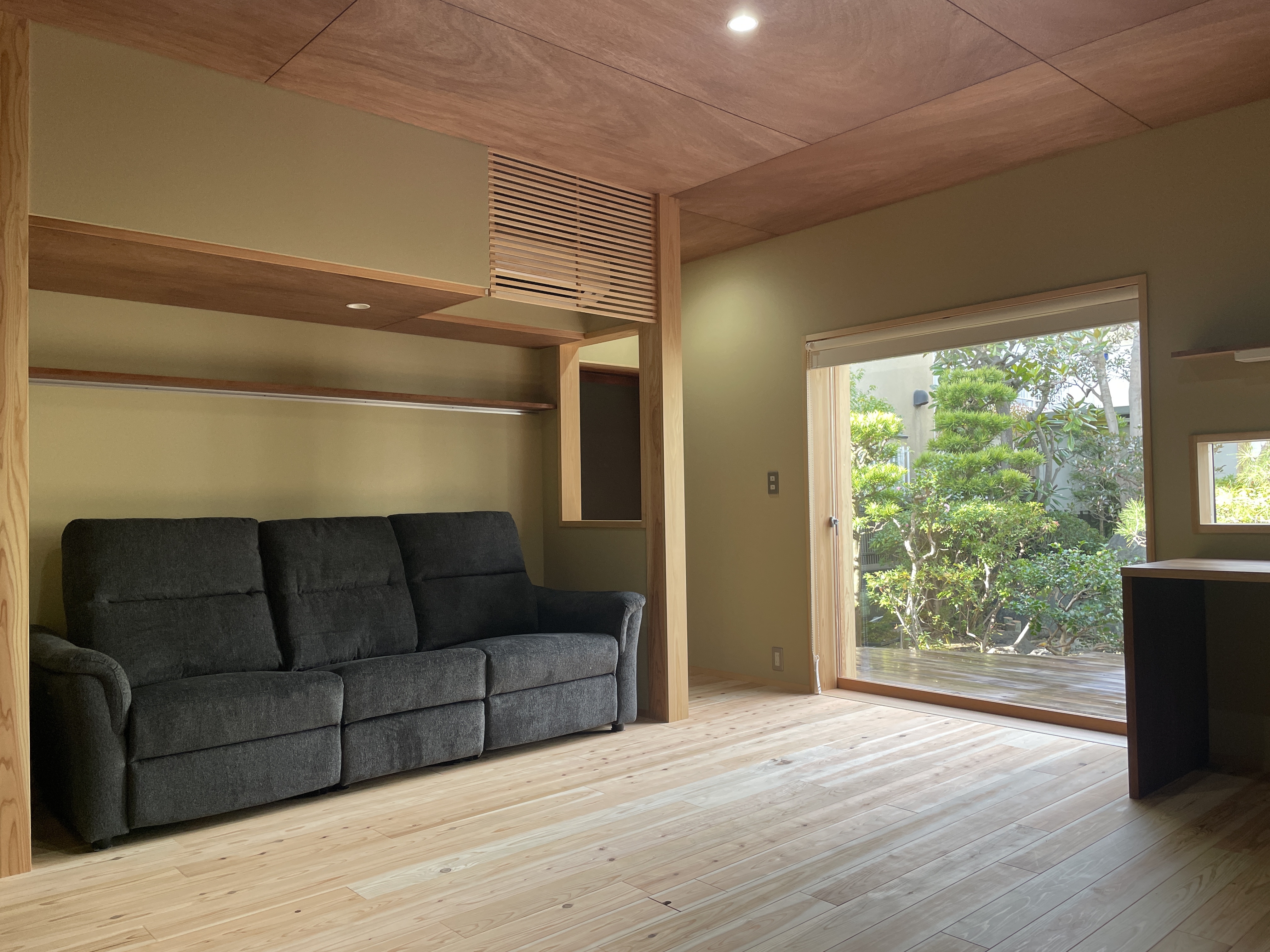 そのお庭に面した和室をリフォームしました。 「家族で趣味を楽しめる場所にしたい」というご要望のもと、くつろげるソファスペースに加え、在宅ワークができるデスクコーナーや、雑貨を飾れる棚を設けました。