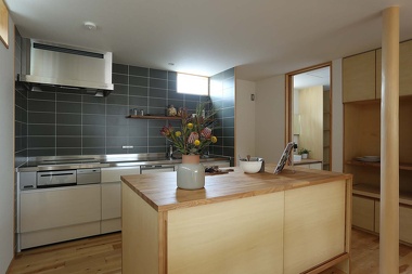 お庭をより近くに感じられる一段下がったリビングや、大きな作業台のあるキッチン。日々の暮らしが楽しくなる工夫がたくさん詰まったお家です。