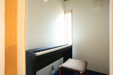 音楽が好きなご家族。ピアノを思い切り楽しめるように、リビングの横に音楽室を設けました。ガラスの扉から家族の気配を感じつつ、気兼ねなく演奏できます。
