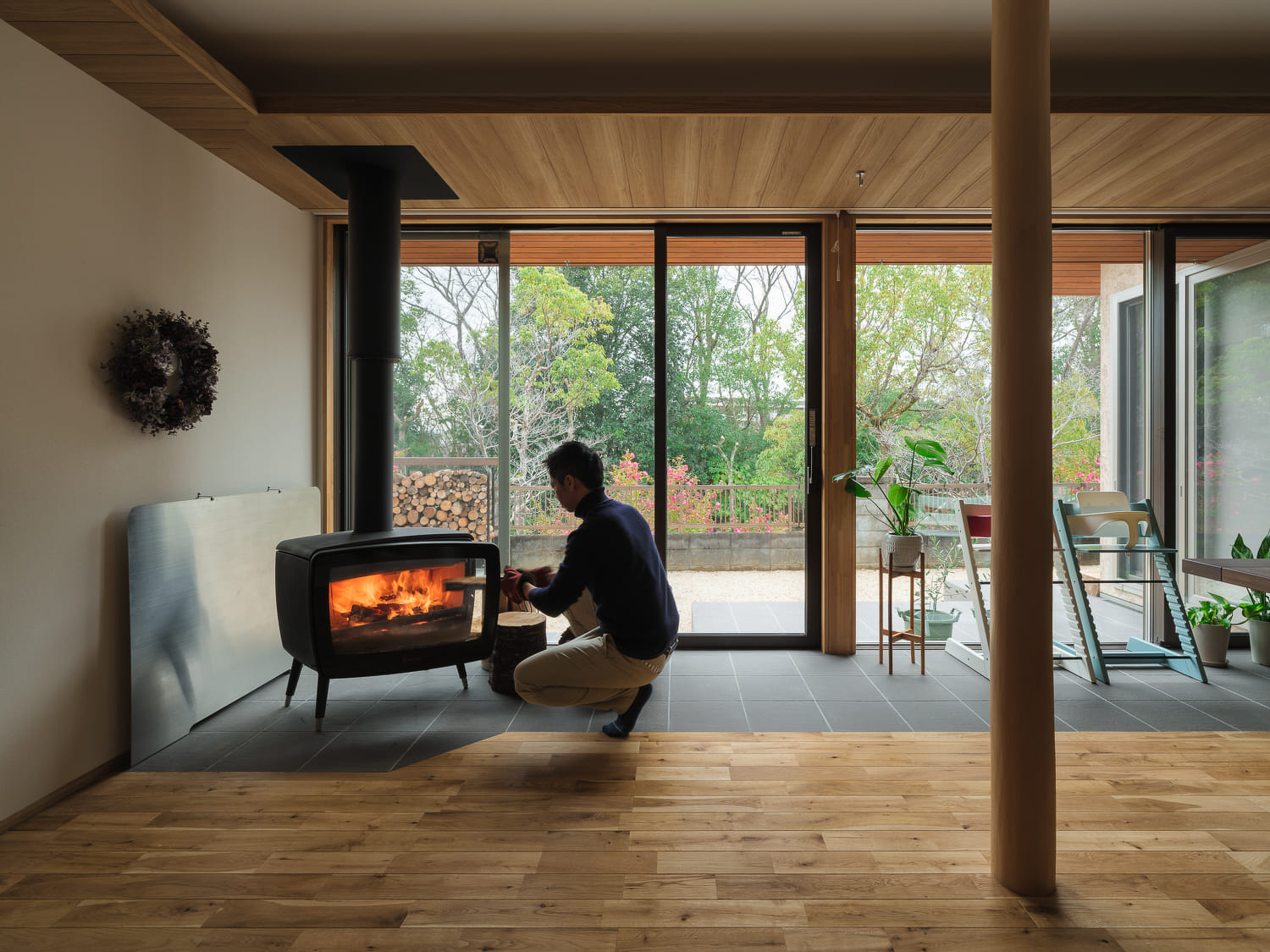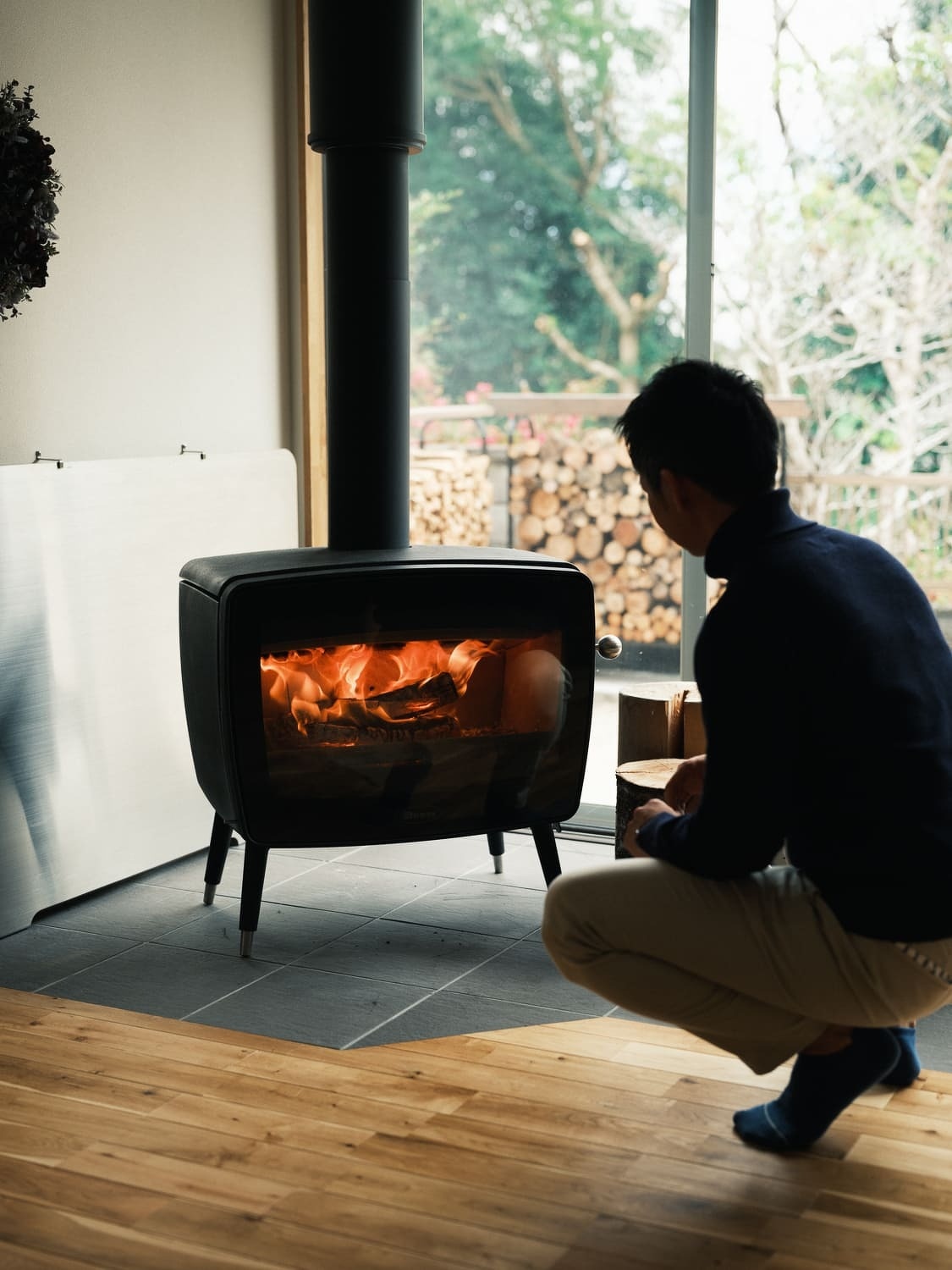 その中で取り入れたかった薪ストーブ。実際に住んでみて、火のあたたかさにホッとしますね。