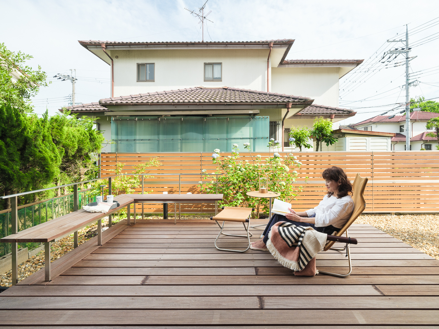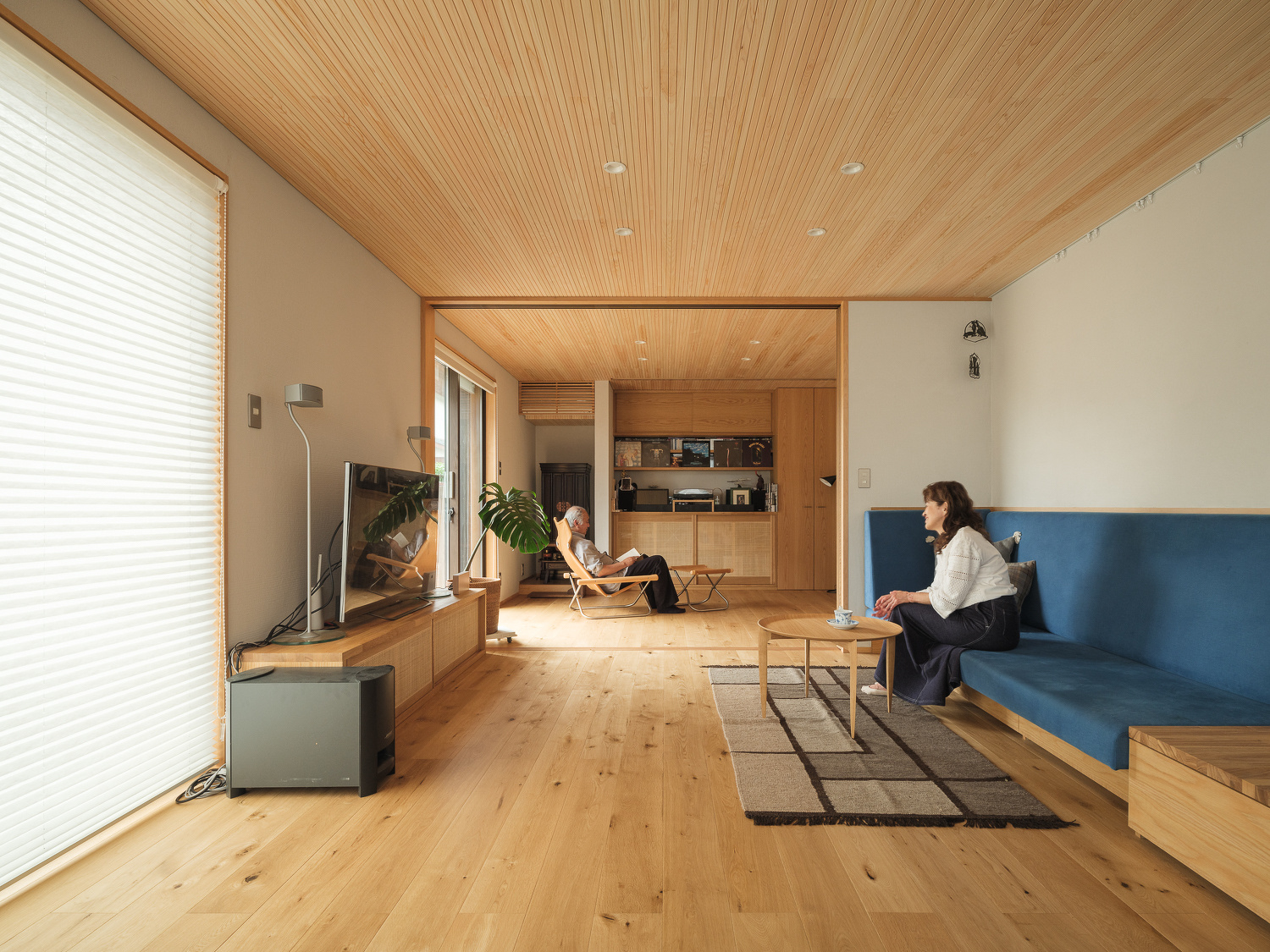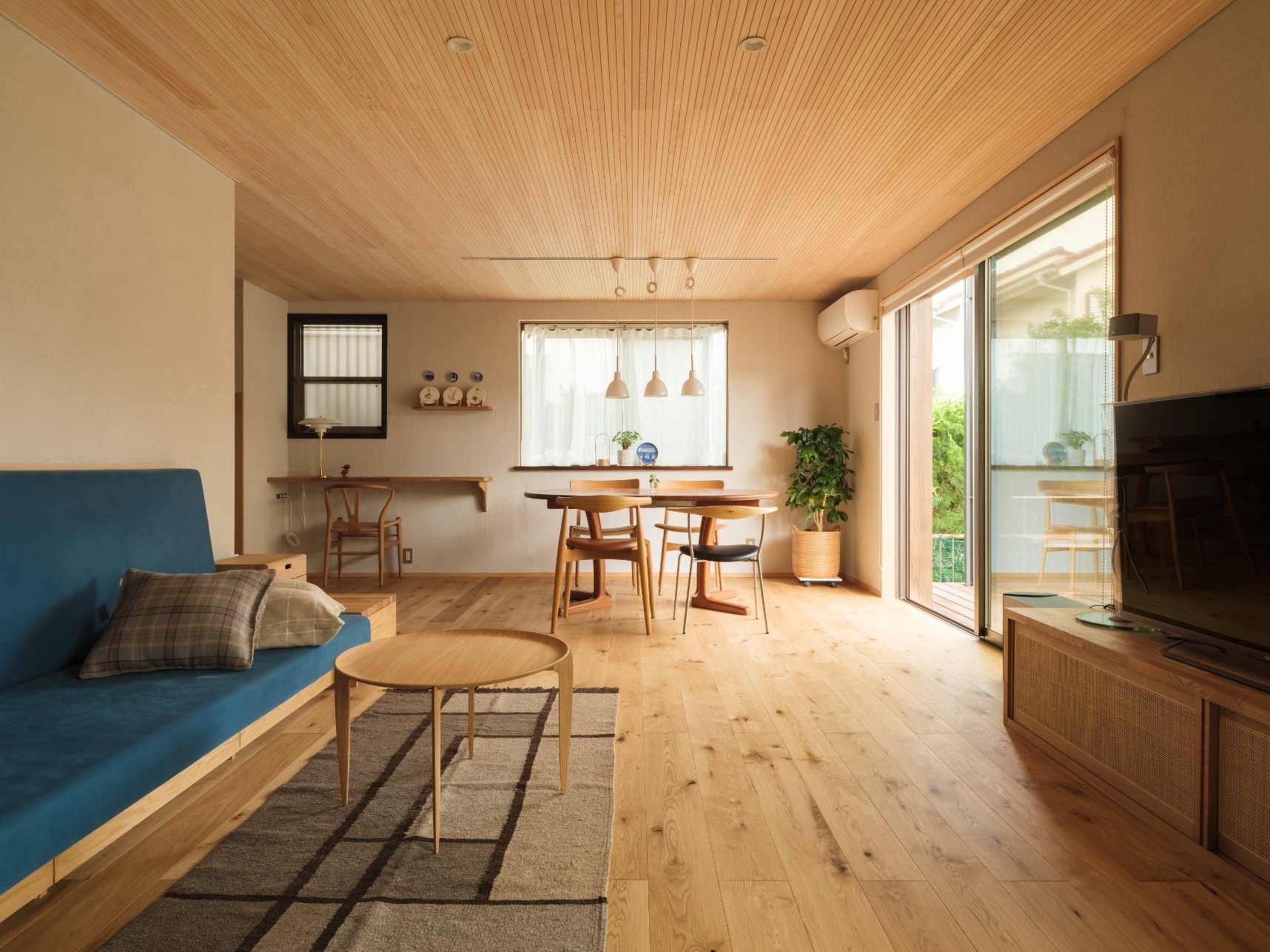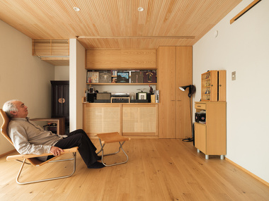 築年数が経過して傷んでいた天井や壁紙は、無垢の床、板張りの天井、塗り壁など自然素材を使った内装に一新。