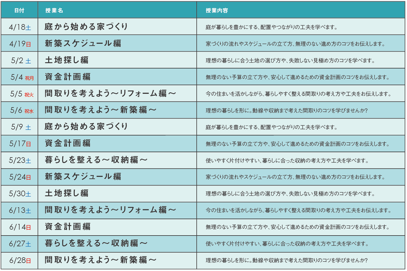 この度、数々の実績を持つ当社の設計士が直接講師を務める「家づくりキャンパス」を開校いたします。